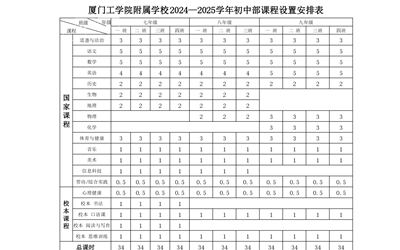 厦门工学院附属学校2024-2025学年初中部课程设置安排