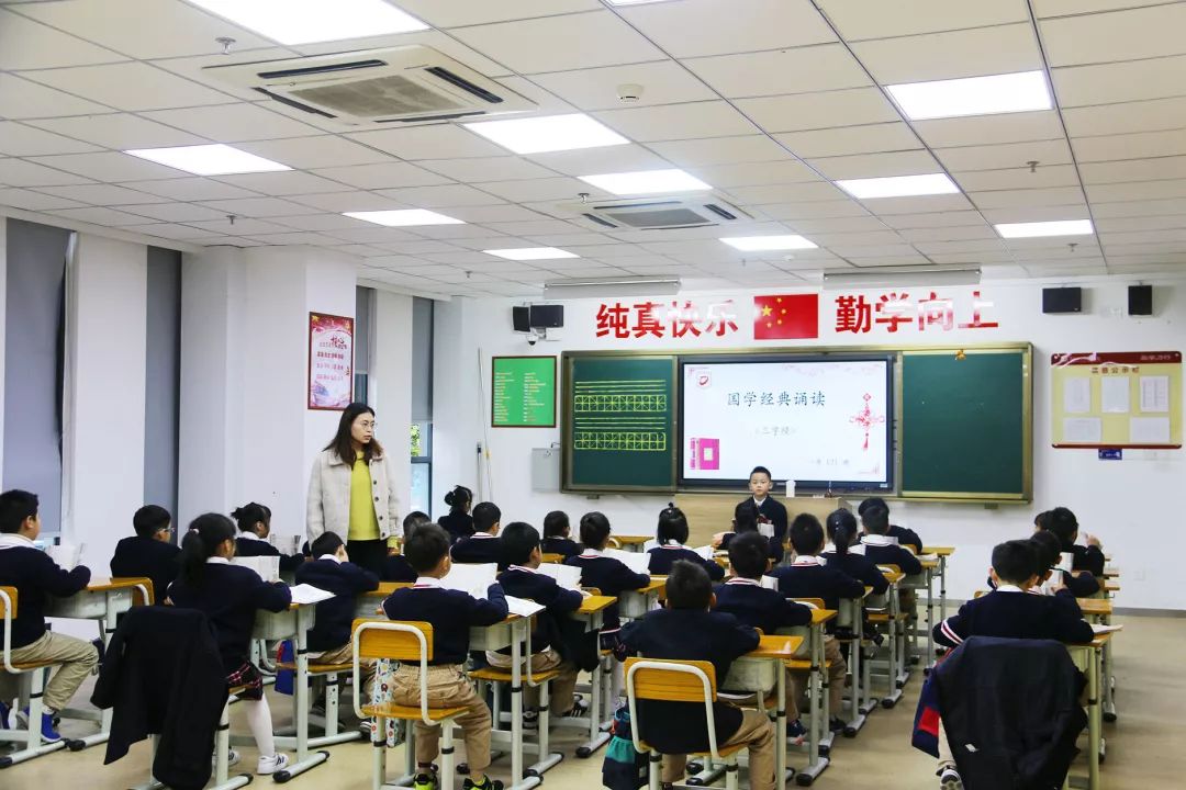 了解活动行程后家长们在带队老师的带领下进入教学区参观观摩体验了我校独具特色的《国学小书院》课外阅读课程。