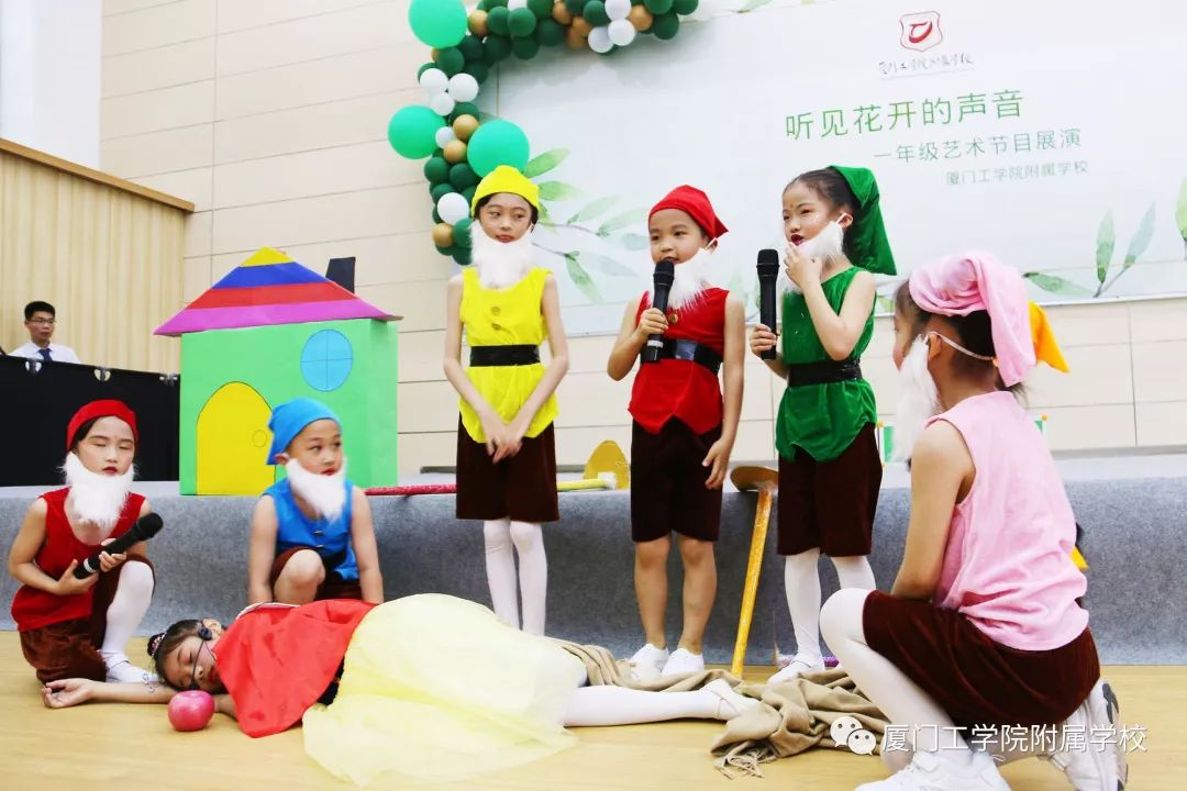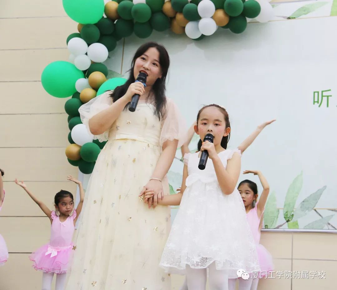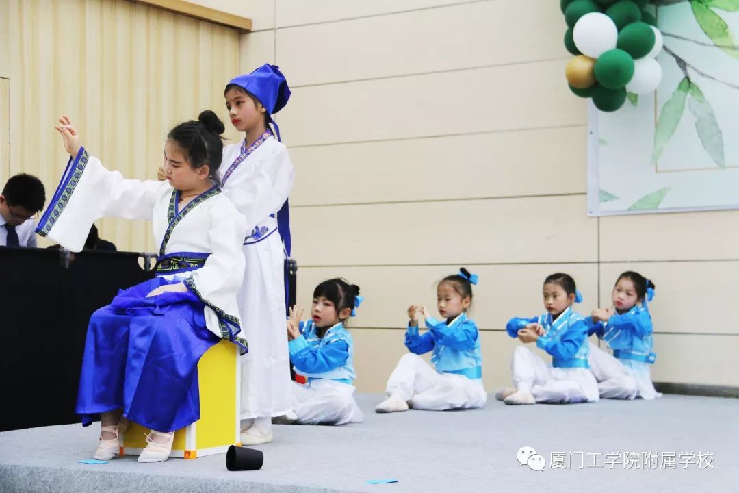 流光溢彩,鼓乐齐鸣。文艺展演过程中,各班级为家长们奉上了一场丰盛的视听大餐。整台演出高潮迭起,精彩纷呈。孩子们以动感的舞蹈、甜美的歌声展示了扎实的艺术功底,诠释了心中的梦想;用古诗新唱、情境表演等多种形式表达了对传统文化的坚守。此外,还有英语剧表演、闽南童谣……台上歌舞绽放,台下欢呼鼓舞,校园变成了一片欢乐的海洋。