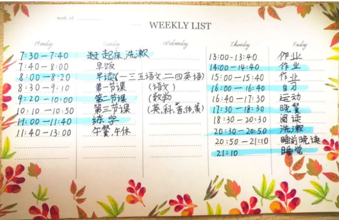 孩子们自己设计的作息时间表,点滴细节展现自律自强