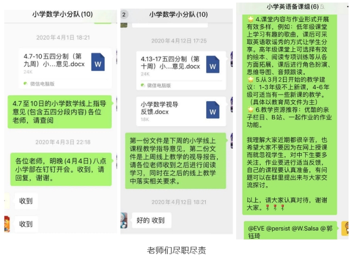 孩子们的成长凝聚了老师们的辛勤劳作。全体老师多次召开组内线上教学研讨会,精心备课,尽力为孩子们送上最优质、最适合的一课。