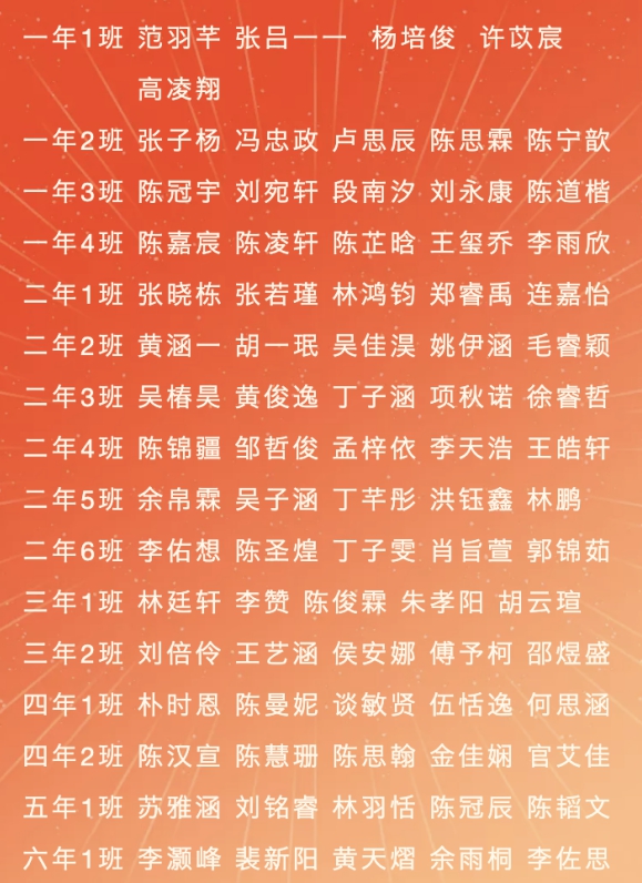 今天,线上学习的优秀学生名单揭榜了,让我们向榜样看齐!自觉做好线上和线下的衔接,打牢学习基础,在新学期取得新进步。同时,让我们对老师、家长说一句:您辛苦了!