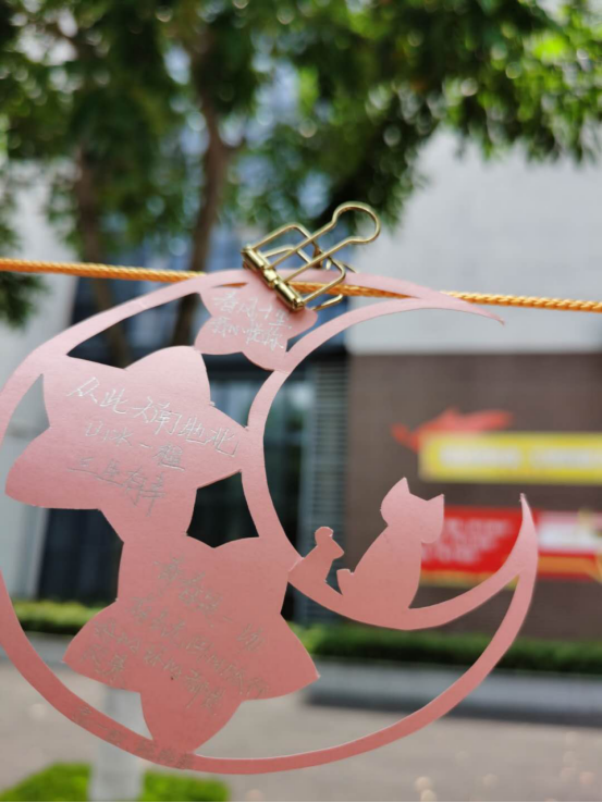 在课堂上,同学们积极投入课堂活动,利用自己的巧思巧手制作出许多精美的作品,暖心的话语和精巧的造型让人眼前一亮,心中温暖。