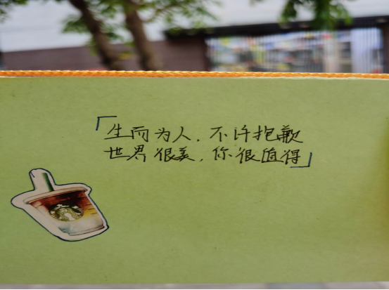 为了更好地了解学生复学后的情绪状况,我们对刚复学的七、八年级、高一、高二年级的学生展开了焦虑、抑郁自评检测。经过统计,结果显示有相当一部分同学正在经历着抑郁情绪的困扰。结合疫情背景下学生特殊的心理状态,我们以“世间美好与你环环相扣”为题组织开展专题心理活动课,在课程上布置学生完成“写给世界的一封情书”,收集学生作品,组织一场别开生面的“情书展”。