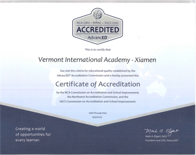 答:是的。VIA中美课程班已于2019年成功通过美国权威认证机构AdvancED(现名Cognia)认证,此认证代表教学质量和成果得到了美国最高教育评估机构的肯定。