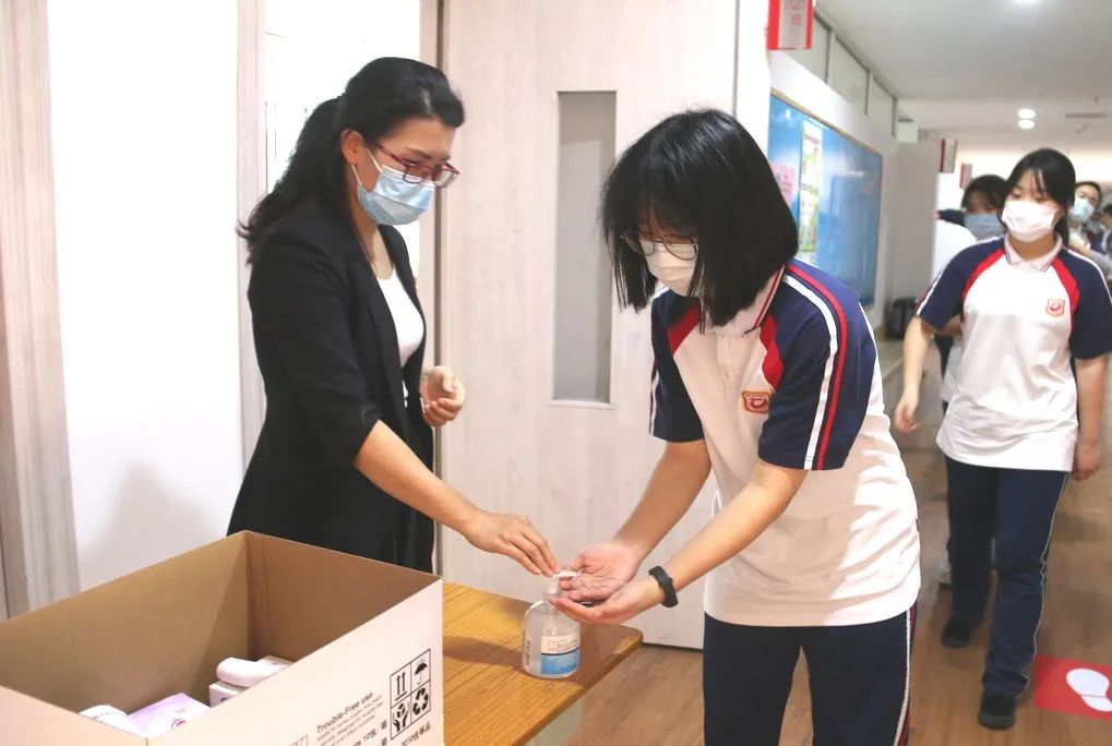 归校,上课、就餐严格控制一米距离,测温+消毒+戴好口罩+勤洗手,样样都不能少,一丝不苟严格执行。