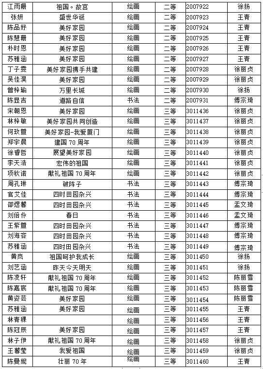 厦门工学院附属学校获奖名单