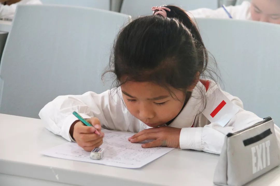 高年级的学生也不甘示弱,小手紧握笔杆,眼不分神,手不停笔,争分夺秒地完成着口算题,赛场上紧张而有序。不信你接着看!