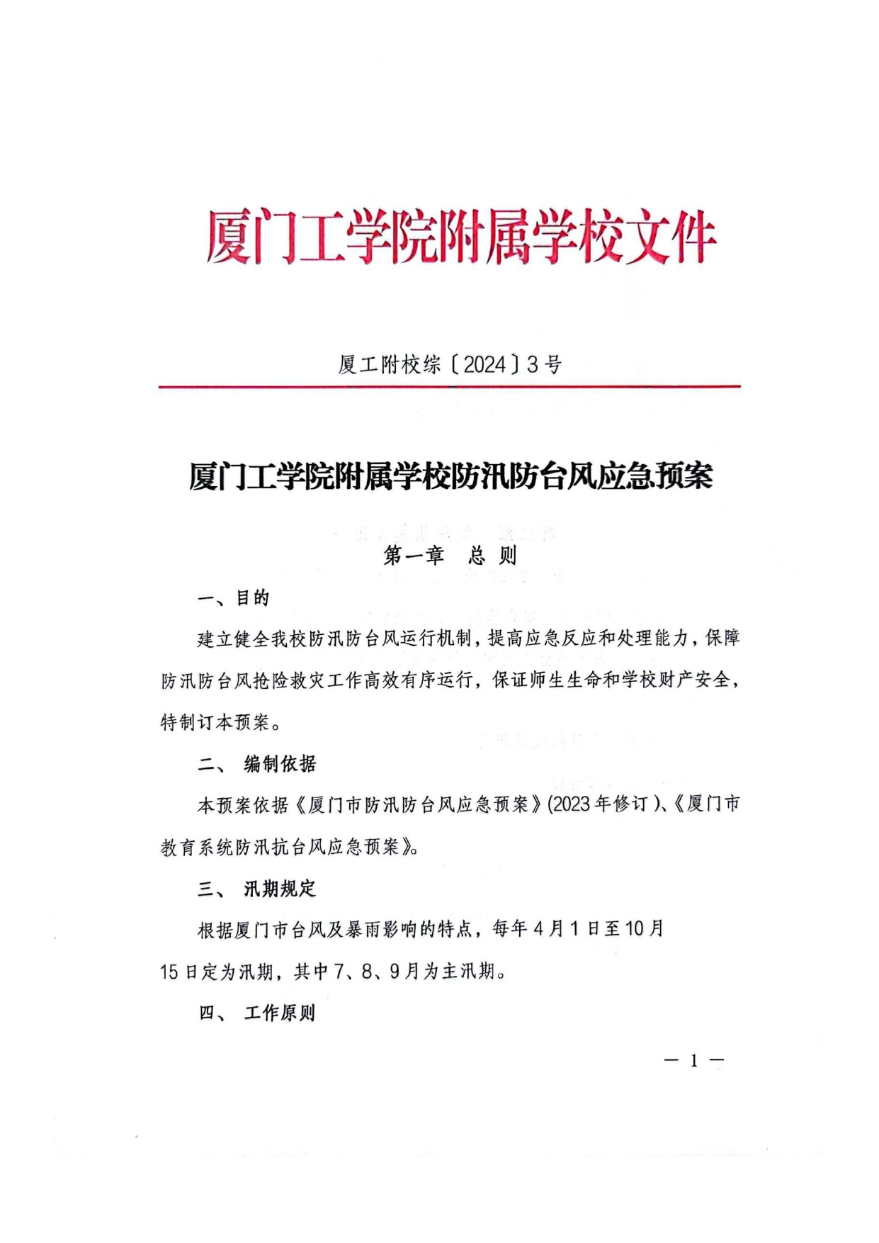 厦门工学院附属学校防汛防台风应急预案
