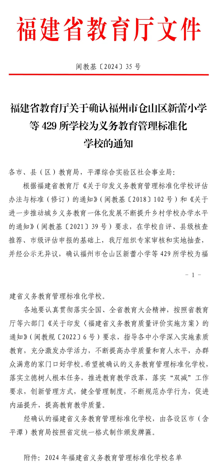 省级荣誉||热烈祝贺我校获评“福建省义务教育管理标准化学校”!