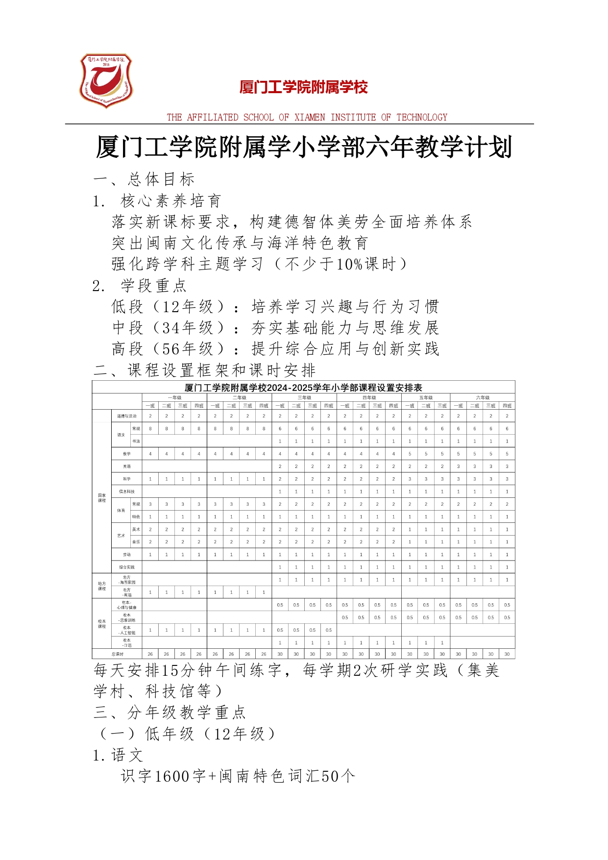 厦门工学院附属学校小学初中部2024年教学计划执行情况