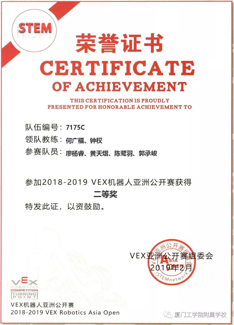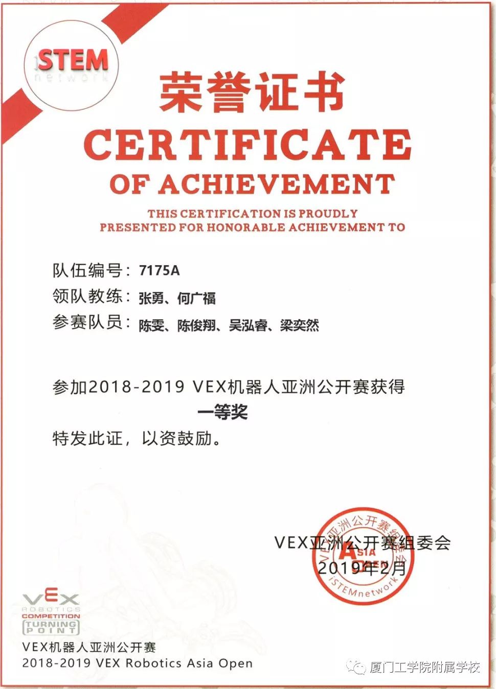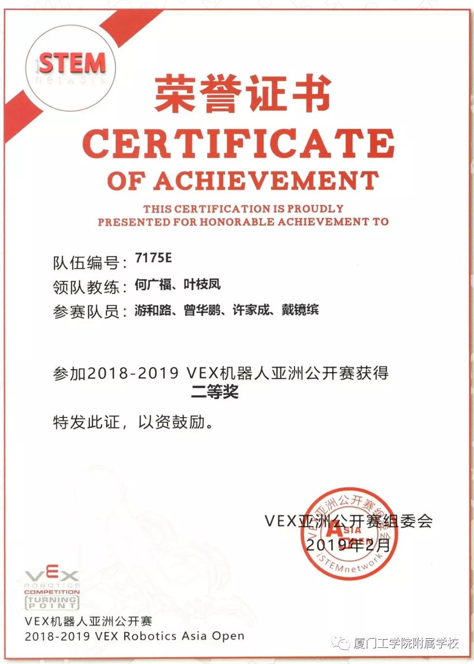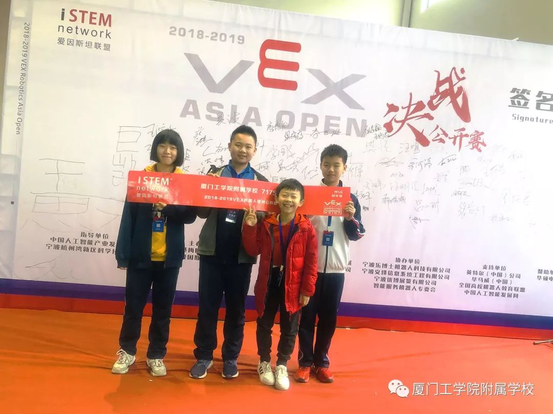 近日,2018-2019赛季VEX机器人亚洲公开赛在宁波杭州湾举办,此活动吸引了370多支VEX机器人队伍参加,进行VEX IQ、VEX EDR和VEX U 不同等级的机器人竞赛项目。经过四天激烈的比赛,我校机器人代表队斩获一等奖一个并晋级联盟赛四强和二等奖三个。