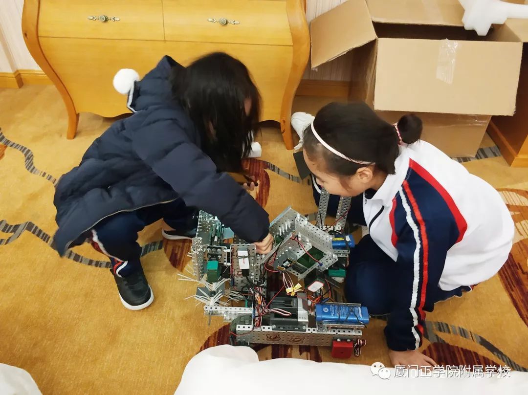 检录完毕,回到酒店,来不及卸下舟车劳顿,同学们开始在酒店里进行紧张的检修,编程,调试自动程序。