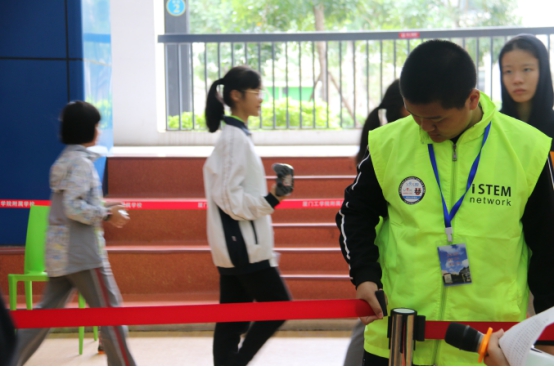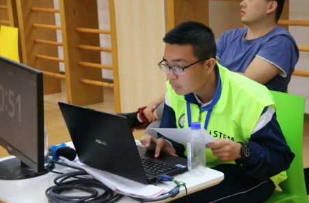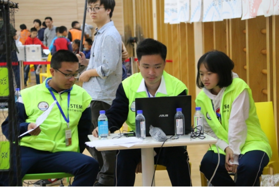 场地上除了激烈的比赛当然也不能忽略我们敬业的志愿者们,他们都来自我校学生会和志愿者协会,那些穿着绿色马甲就是我们可爱的志愿者们,他们各司其职,在比赛中起着不可或缺的作用。他们负责秩序的维护、协助机器人的检录、成绩录入、摆场、叫号……一整天下来也是筋疲力尽,为他们的认真负责点赞。