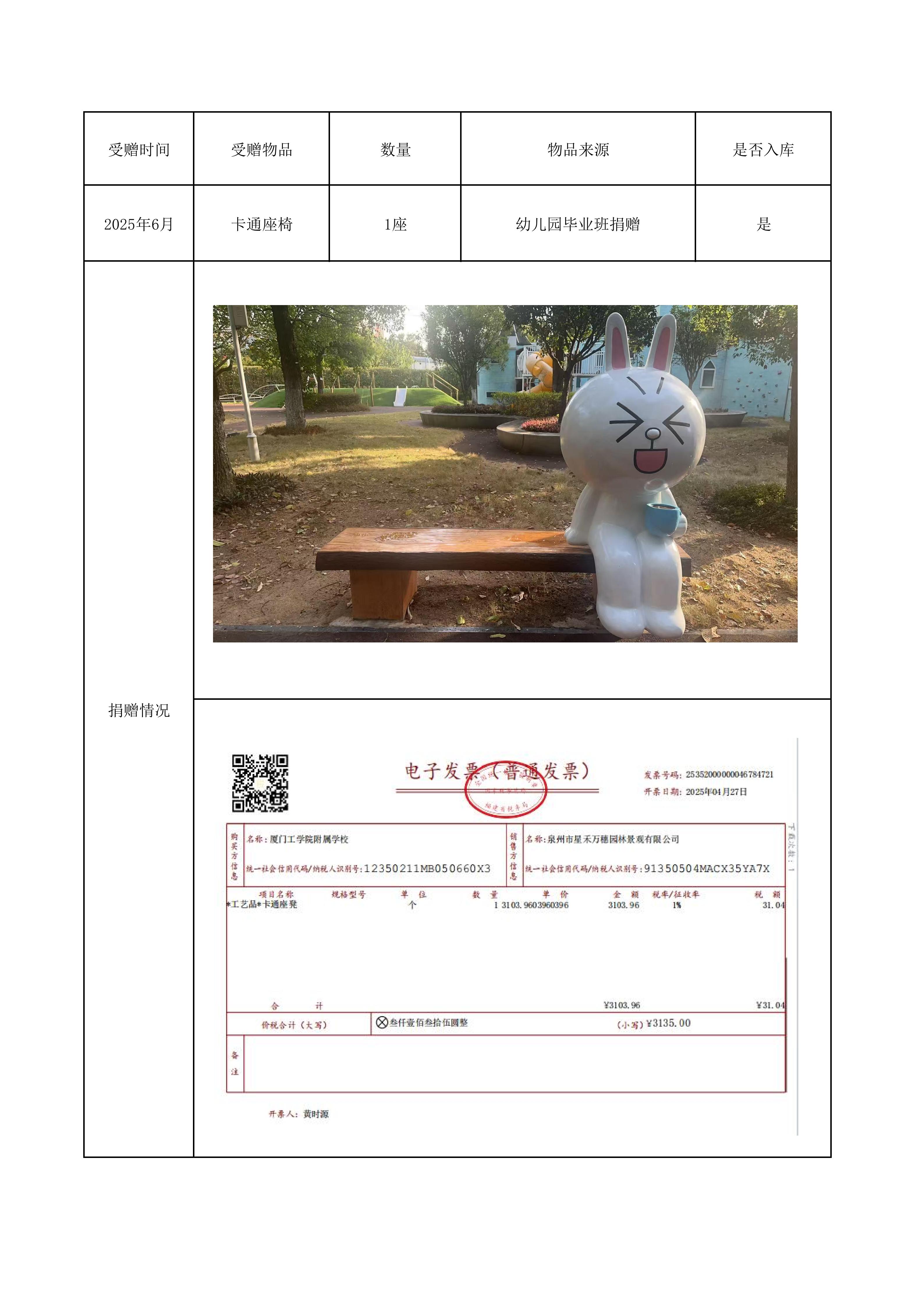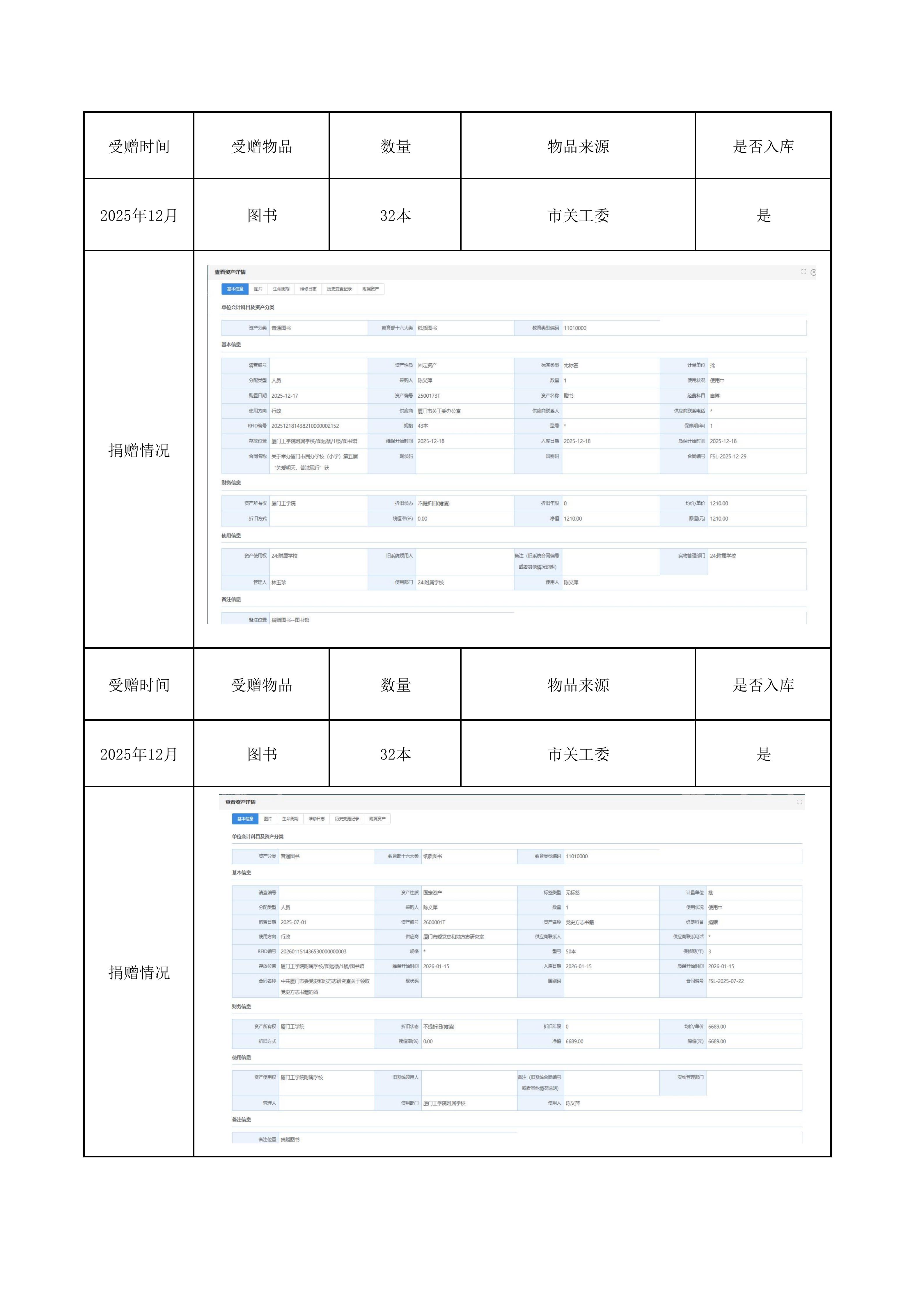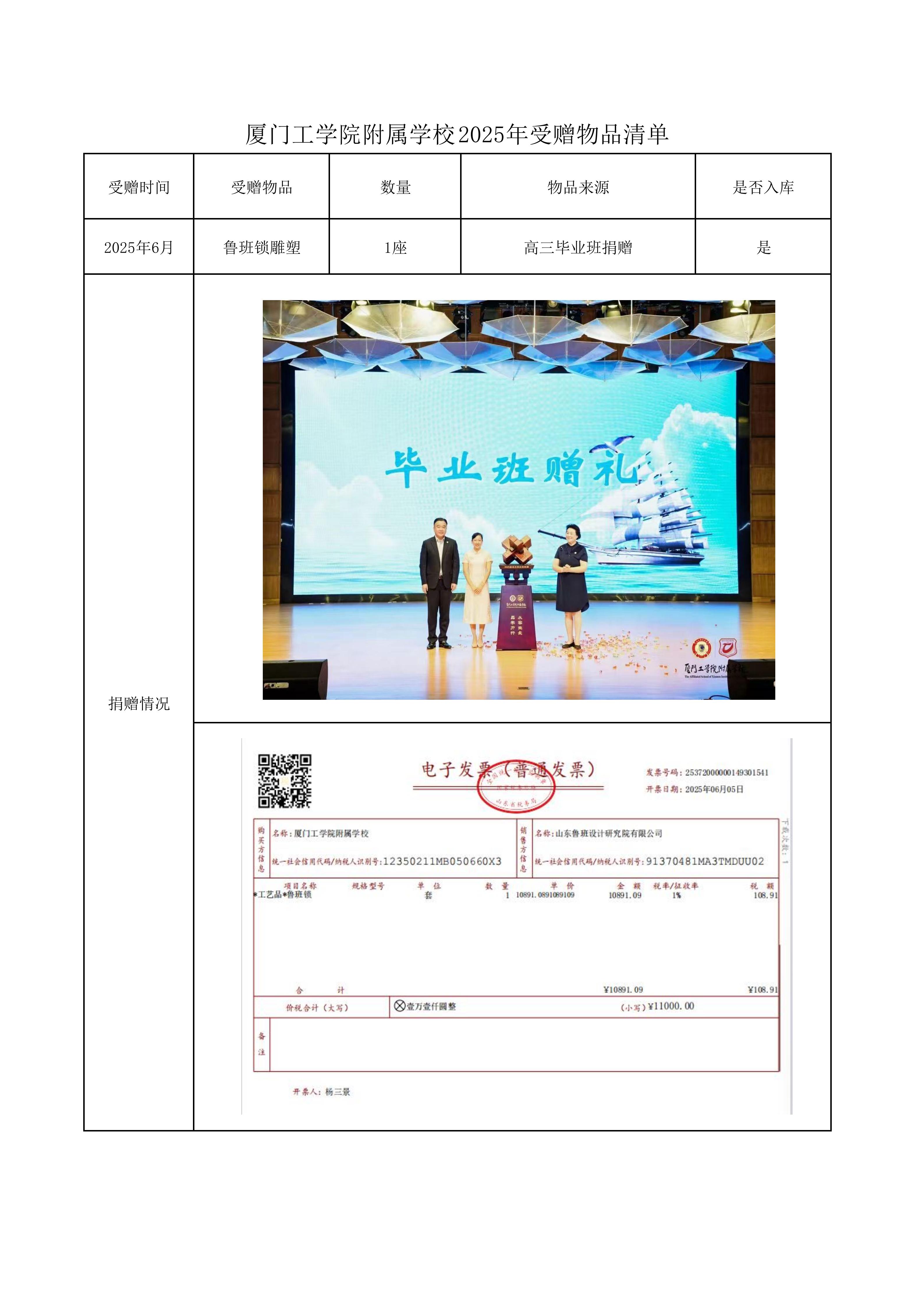 2025年受赠物品一览表