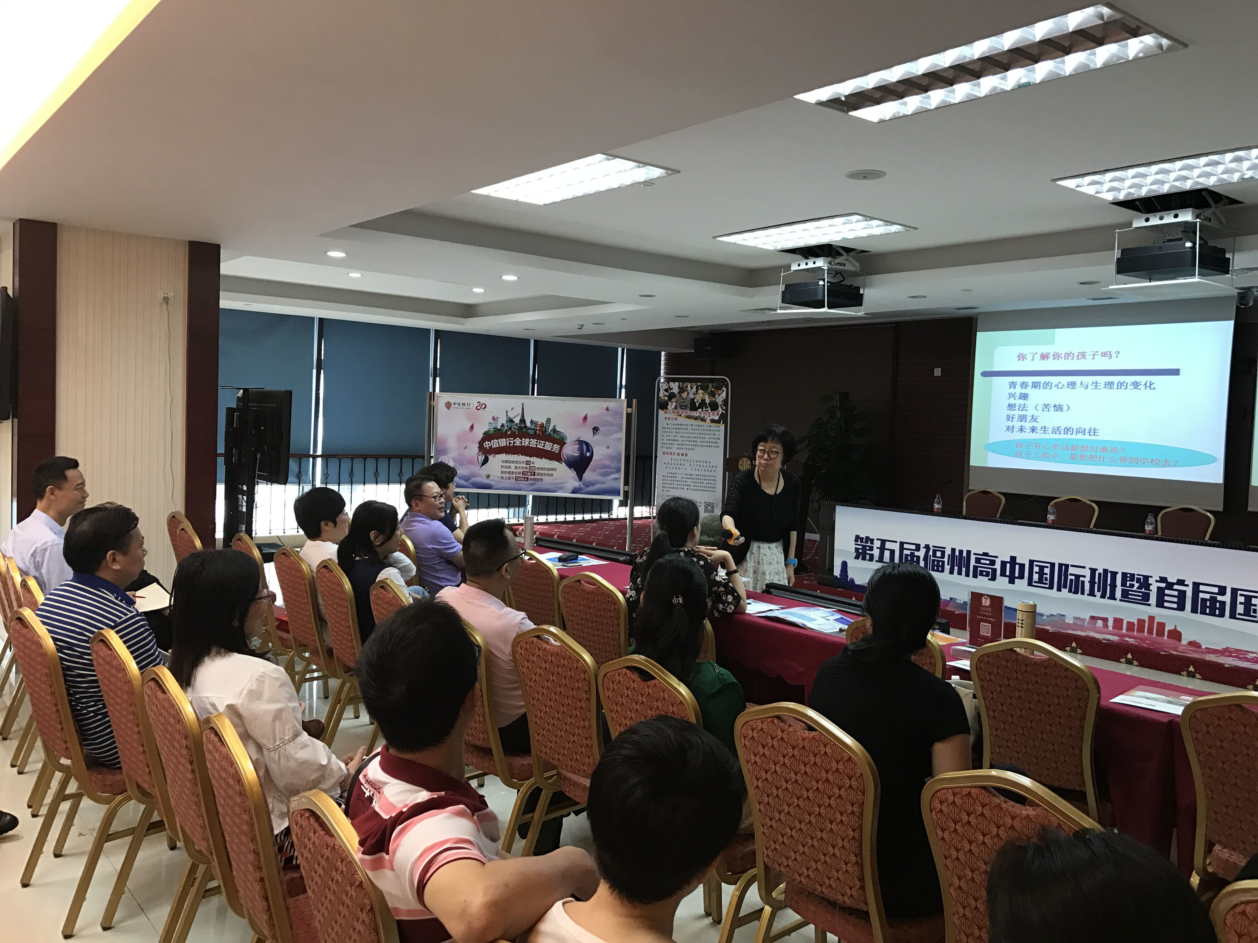 2017年5月21日上午9点,第五届福州高中国际班暨首届国际学校招生咨询会在福州的中信大厦会议厅拉开帷幕,此次招生咨询会由福州晚报教育周刊与中信银行联合主办,我校获邀出席招生咨询会,为广大的学生及家长们提供面对面的咨询服务。