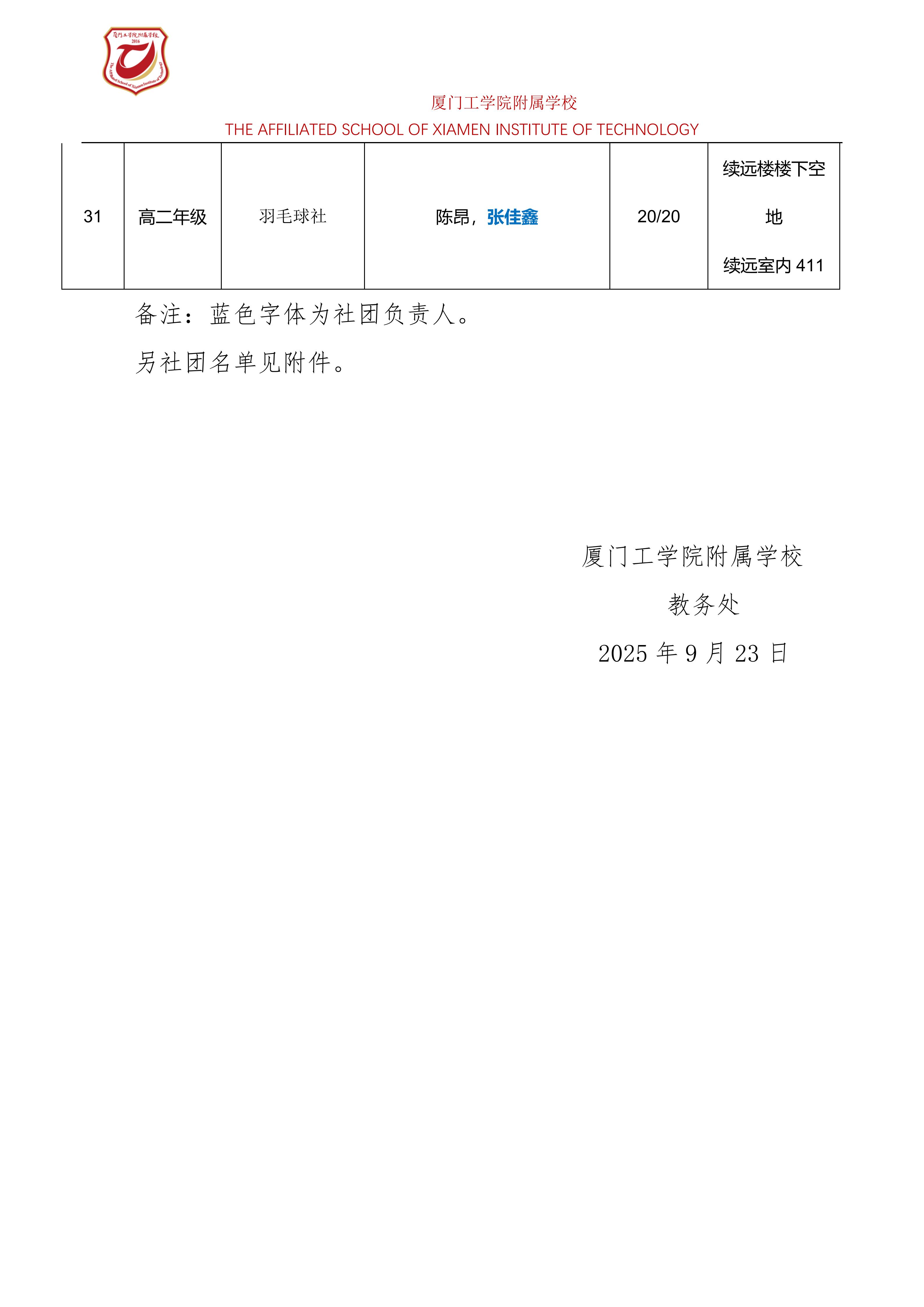 关于2025-2026学年高中部社团活动开设项目的通知