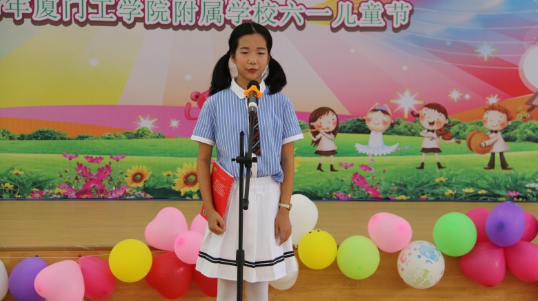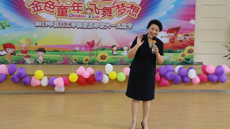 表演结束,校长致辞,祝孩子们儿童节快乐,同时对孩子提出殷切的希望,希望孩子们在我校快乐纯真成长,健康全面发展。校长指出科艺和外语是我校的两双翅膀,这两双翅膀助孩子全面发展。