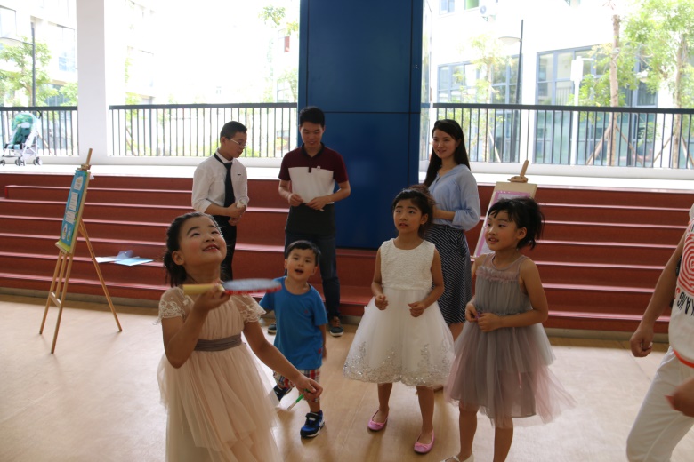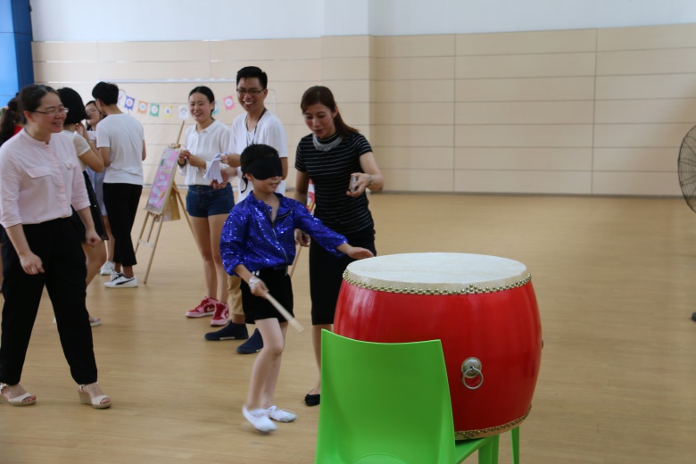 精彩的表演结束是欢乐的游戏环节,此次游戏环节设置了Ping pang Spelling乒乓拼、Charades你演我猜等4项外语特色趣味游戏,和盲人击鼓等体育趣味游戏。孩子们在欢快的游戏中,快乐学习,并赢取精美的奖品。