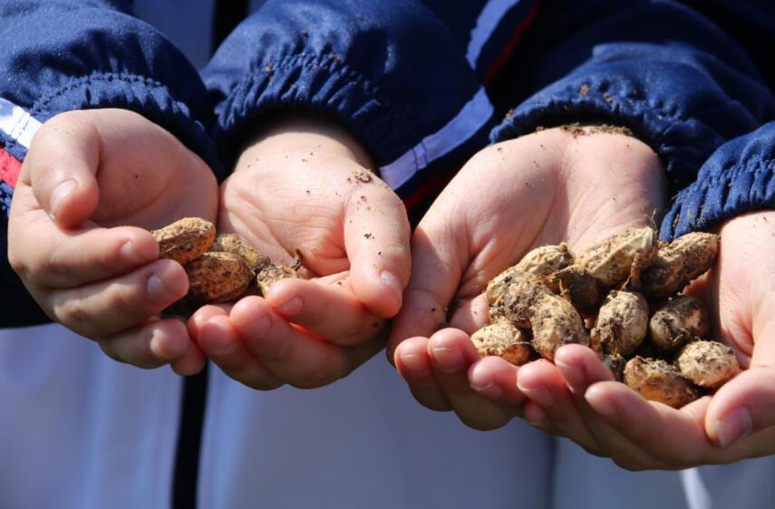 同学们一来到花生地,就迫不及待要看看花生长什么样了!看着他们,你是否也情不自禁地被这认真的态度所感染呢?