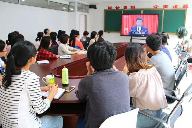 在报告中,习近平总书记多次使用了直白朴素的“大白话”,深入浅出,既“接地气”又意义深远,充满凝聚力、说服力、感染力。观看直播现场的师生深深折服。