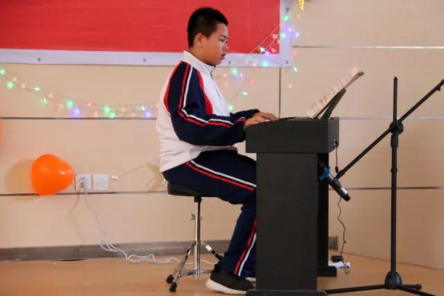 “咚”的一声,震撼全场!随着三年(1)班郭承峻同学一声有力的击鼓,现场所有人的目光都被吸引到了舞台上。“咚!咚!咚!呲咚哒咚呲咚哒!”紧接着他的手一扬,用强音打破了现场的安静,全场所有人都跟着节奏拍起手来,有的同学更是跳起了机械舞。郭同学的架子鼓打出了强烈的节奏感,让人听了热血沸腾。