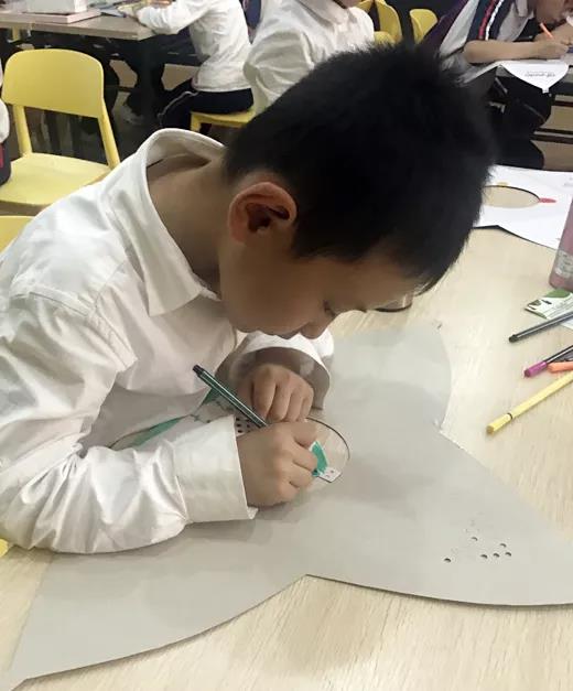 刚刚钻进帐篷里还意犹未尽呢,那我们就来做一个属于自己的帐篷吧!孩子们运用之前学到的创意思维,纷纷动起手来,认真、专注地画着、写着,为自己设计了一个独一无二的小帐篷,这可是属于我们自己的秘密基地哦!
