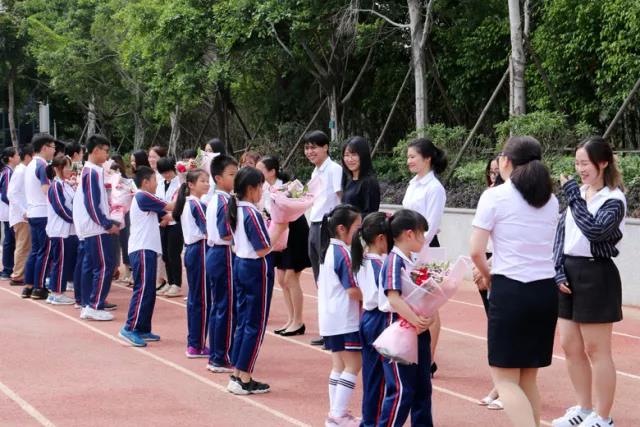 周一上午,五星红旗像往常一样迎着朝阳、伴着乐声、带着师生们又一周的新寄望缓缓升起。在教育教学中心主任王玉君老师的主持下,各班班长陆续上台为班主任赠送鲜花,庆祝这个独属于厦门工学院附属学校的班主任的特殊日子。