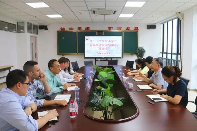 Dr. Cross校长与陈博士受邀出席座谈会,与厦门工学院附属学校总校长赵继容与总副校长黄亮生一同就中美教育交流与合作机会进行深层互动沟通。经过中美双方近一年的联合培养,学生学业在原有基础上逐步提升,我们将坚定聚集双方优质资源,力求通过首届学生的优异成绩营造校园知名度和美誉度,扩大外在影响力,提升录取生源质量。