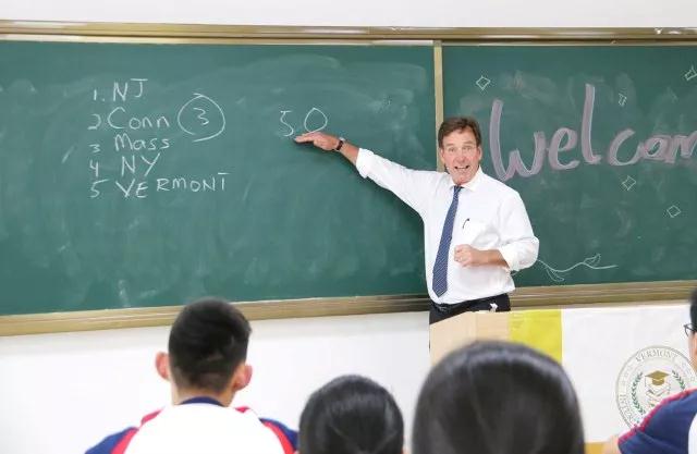 下午两点,Dr. Cross校长马不停蹄地与我们的宝贝孩子们见面了!校长发表了精彩的演讲,并告诉孩子们,佛蒙特州是连任全美教育质量排名前五的州呢!佛蒙特州在美国与国际教育产业享有名望与声誉,并且有许多强有力的战略合作伙伴,譬如耶鲁大学,哈佛大学以及普林斯顿大学。