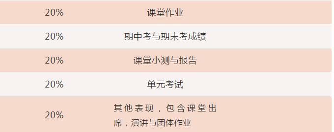 答:如图表所示,期末成绩考核依据五大类:作业、课堂参与、小组项目、平时考核与考试,期中期末考试成绩各占20%。不同于国内“一考定终身”的模式,美式高中评分机制以累积式评分,更看重学生在学校的持续性表现,以此鼓励学生持之以恒的学习态度,并保证评分的公正性。GPA(Grade Point Average) 为平均学分绩点,在毕业前由学校统一根据其各科科目成绩进行计算。