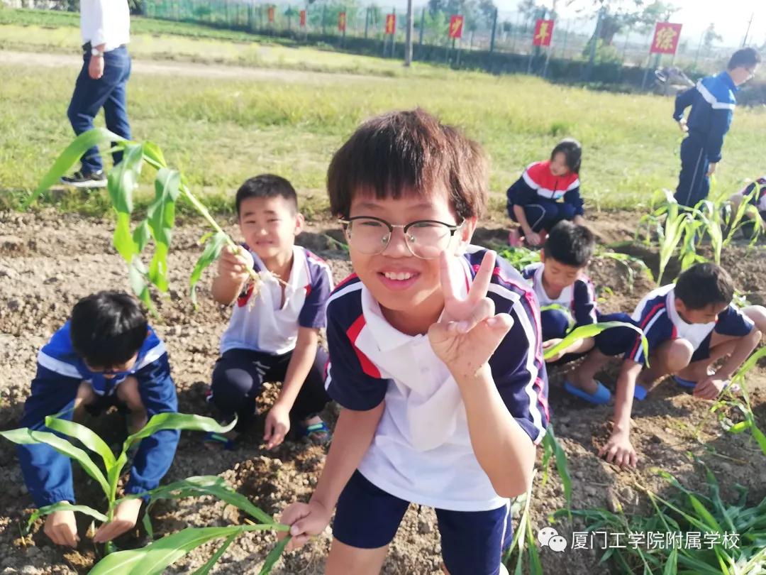 暖阳下,只见一只只挽起的裤腿,一双双亲吻着质朴土地的小脚丫,一个个面朝黄土头顶阳光的小脑袋,一行行辛勤地屈着身、弯下腰、弓起背的身影在田间烁动。不一会儿,一根根秧苗已树立、一棵棵玉米杆已挺起、一个个地瓜早已收入载满作物的大篮筐内。附校学子们,在半日的农业实践中,以劳动获真知,以劳动感快乐,更以劳动悟精神、习精神、扬精神!