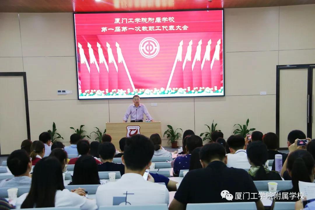 丹桂飘香,枫叶正红,厦门工学院附属学校又迎来了一个激动人心的时刻。10月24日下午,经全体教职工选举产生的45名教职工代表齐聚图远楼一楼报告厅,隆重召开我校第一届第一次教职工代表大会,黄亮生总副校长主持了会议。