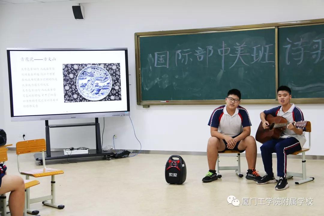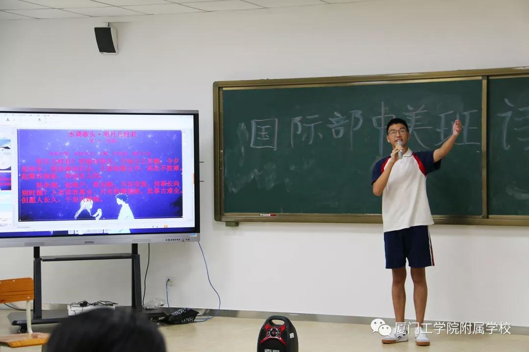在去年,国际部的学生们积极参加了我校“书香润心田,诗意满校园”的校园展示活动。国际部高二中美班的吴锦鹏、郑星萍同学还参加了厦门市的朗诵展演。