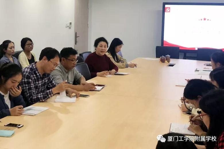 最后,党支部书记赵继容同志对此次会议进行总结。赵书记勉励各位党员同志把党组织工作融入学校教育教学各项工作中,以阳光的心态、饱满的激情做好本职工作,用心尽责,开拓创新,希望党员同志在工作中发挥先锋模范作用,通过努力翻开我校党支部历史的新篇章,开启新的历程,努力创建具有厦工附校特色的党支部。