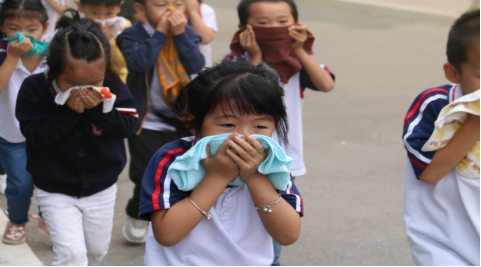 10:00一到,随着一阵警报声的拉响,班主任老师迅速组织学生疏散逃生,科任老师迅速到达楼梯口引导学生进行有序疏散。各班按照指定路线,用手、袖口、湿巾、衣角等捂住口鼻,紧张而有序,不慌乱不拥挤,第一时间撤离到学校安全地带。