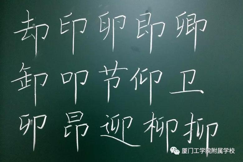 语文老师们每天在书法老师的指导下练习粉笔字