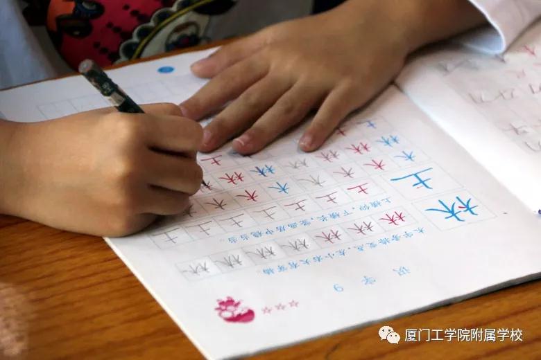要写好字,必须靠练习。一年级的语文课堂,每节课有5-10分钟的习字时间,老师们也充分利用课余零碎时间,让孩子积累生字,加强书写——午间轻柔的音乐响起,孩子安静地坐下来,在老师的指导下进行书写练习;晚自习前20分钟,孩子们翻开练习册,一笔一画完成习字作业,走读的孩子也会在家长的陪伴下自主练习。