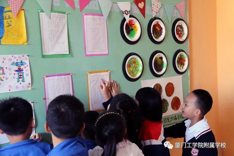 孩子们争相欣赏同伴们的作品