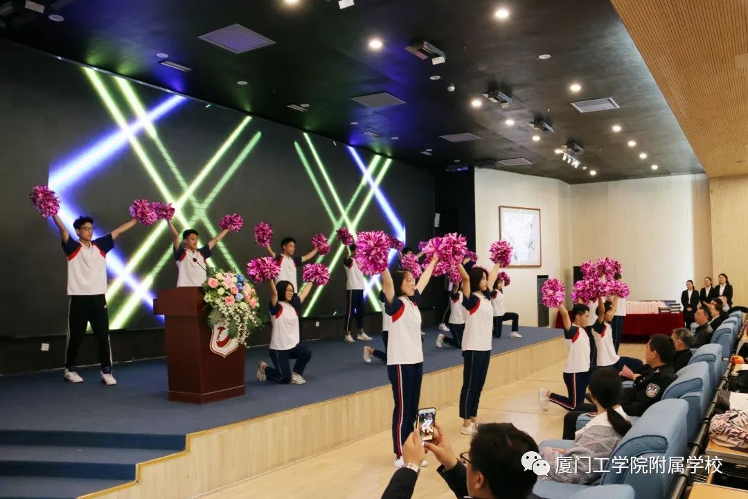 主持人高一年段长钱玉龙老师宣布开始后,闭学式在荣获“厦门市青少年啦啦操锦标赛二等奖”的啦啦操表演中拉开帷幕。活力四射的队员们展现了附校学子的青春活力,赢得了师生们的阵阵喝彩。