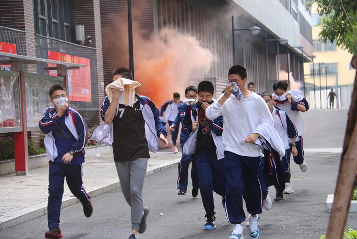 13:20一到,随着一阵警报声的拉响,生管老师迅速组织学生疏散逃生,科任老师迅速到达楼梯口引导学生进行有序疏散。各宿舍区按照指定路线,用手、袖口、湿巾、衣角等捂住口鼻,紧张而有序,不慌乱不拥挤,第一时间撤离到学校安全地带。
