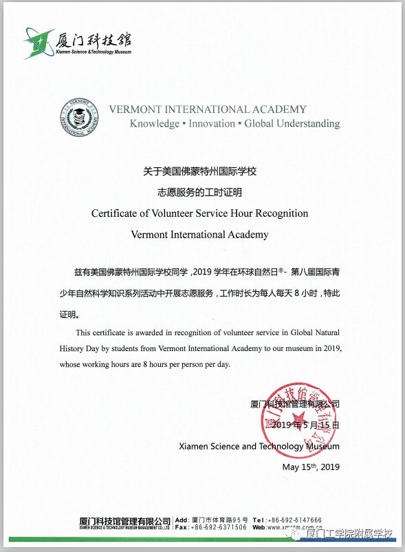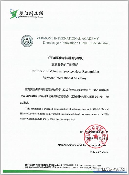 阿德勒说,“奉献乃生活的真正意义”。2019年5月11日、12日,我校中美班17名学生以志愿者的身份参与到2019年度环球自然日——青少年自然科学知识挑战赛厦门赛区决赛活动中。中美班的同学分别担任了户外组、签到组、引导组和监督组的相应工作。