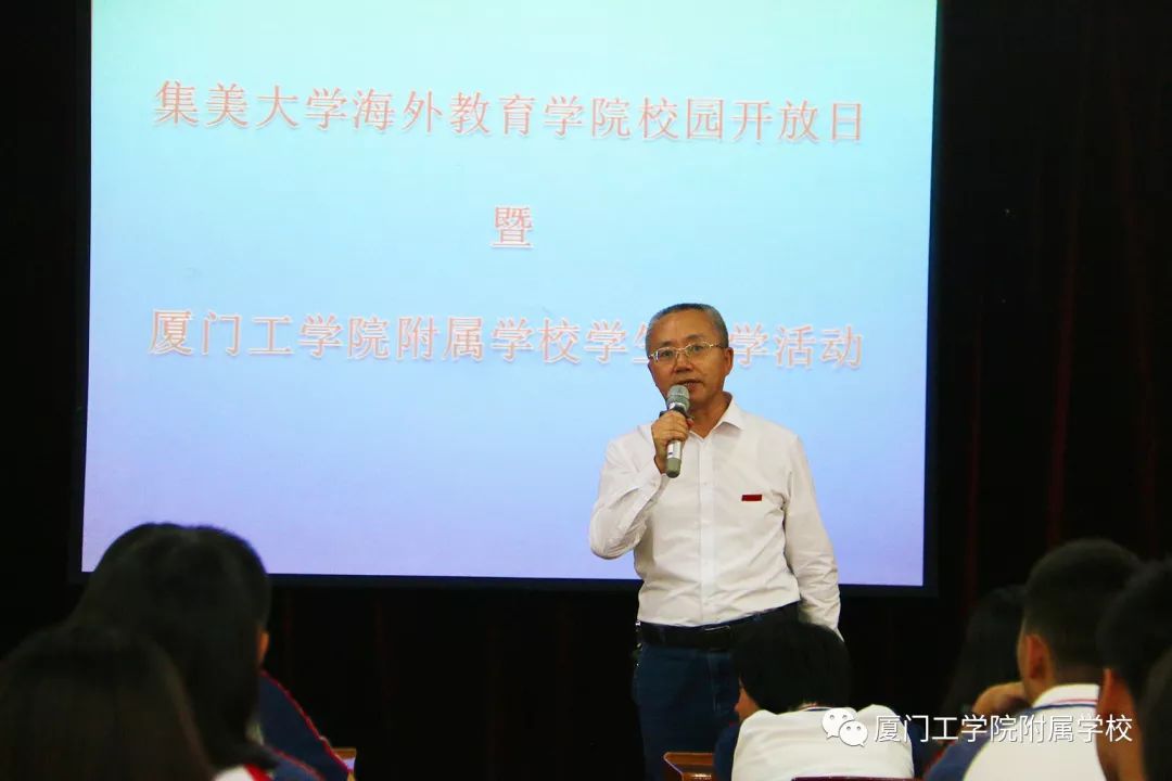 上午8点,我校高二师生们来到集美大学参加海外教育学院的校园开放日。活动中,同学们认真地聆听了海外教育学院老师介绍学院特点、各项目发展历程及成果,并参观了中外合作办学15年的成果展。同学们深受感染,也了解了集美大学海外教育学院具有的优良办学条件和浓厚的学术氛围。