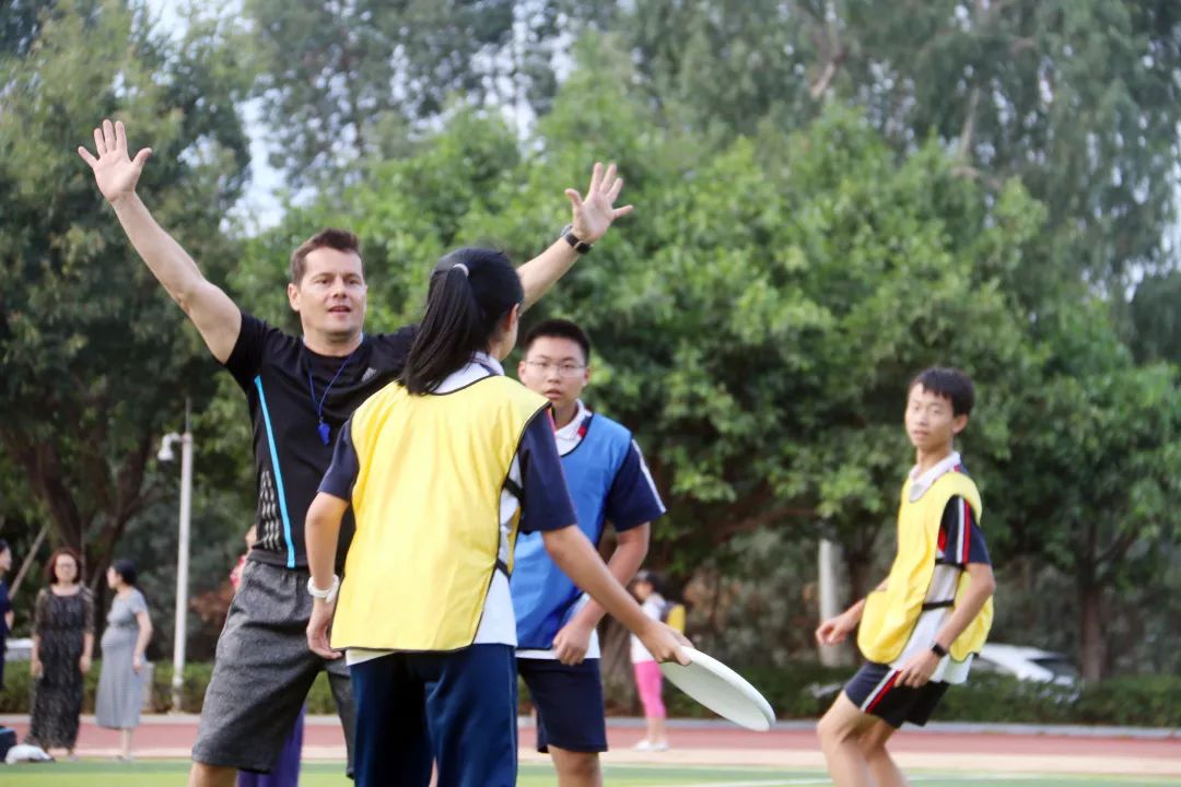 同学们在与中外籍老师们的飞盘竞技中,能够锻炼到全身各个部位,增强身体力量,提高柔韧性。更重要的是,极限飞盘是一个团队项目。在参与过程中,能够培养队友之间的团结、配合、互帮互助的团队精神。希望这样的特色课程能让同学们更加明白团队的力量,感受运动的快乐,在快乐中奋起学习,幸福成长!