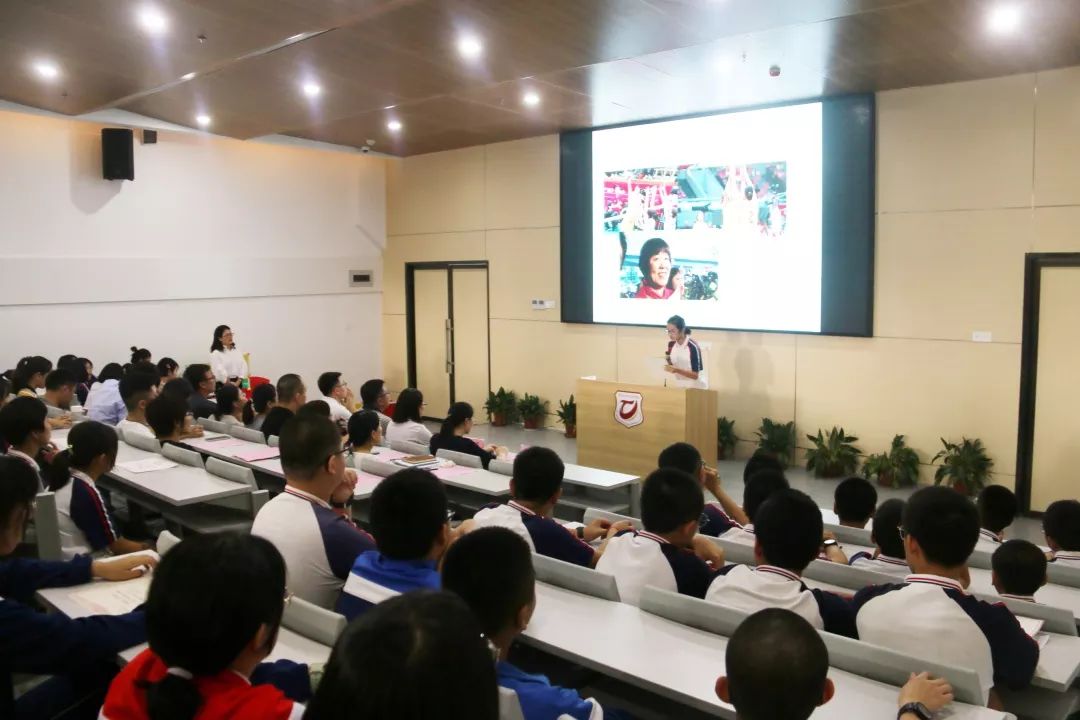 九年级学生代表陈弈桦以“中国女排精神”为傲,鼓励大家勤积跬步终至千里