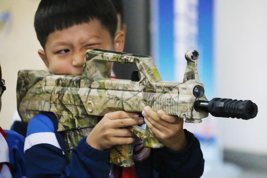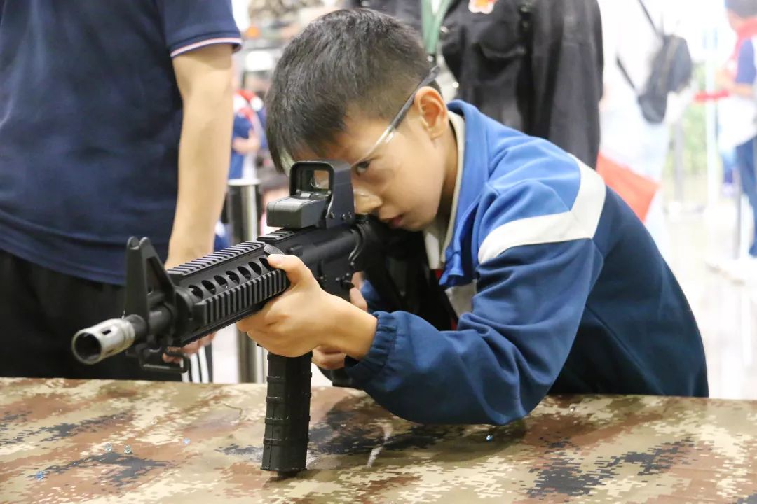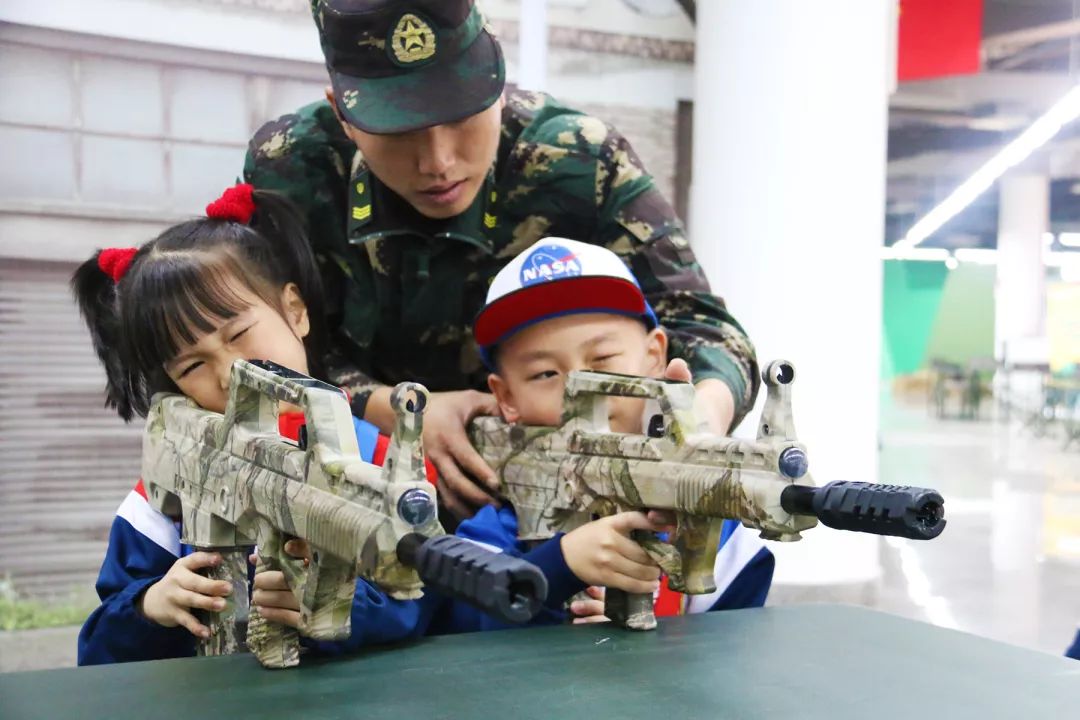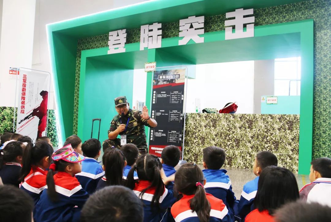 一下车,孩子们就被各种坦克、战斗机模型所吸引。教官介绍、演示92式手枪分解结合 ,同学们现场操作;穿上吉利服伪装,体验潜伏狙击;登坐登陆艇,感受抢滩登陆……同学们在习得军事科普知识的同时也收获了一次良好的军事互动体验。