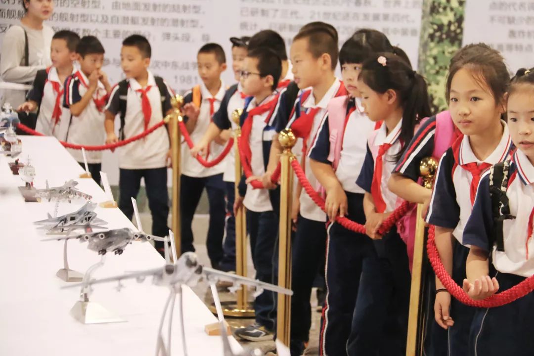 上百件大国重器模型,让孩子们大开眼界,近距离接触先进军事科技。同学们听得津津有味,心灵受到极大的震撼,不时发出一阵阵赞叹。