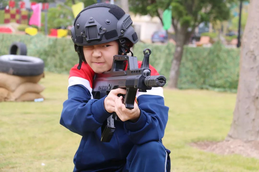 拿起枪,装弹、隐蔽、瞄准、射击,真人CS枪战活动让同学们过了一把“军人瘾”。一些专业素养也在不知不觉中提高。
