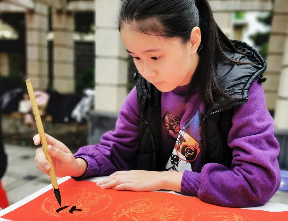 师生们挥毫泼墨写就的大红对联,吸引了大量社区居民驻足观看。一幅幅火红的春联,一个个期待满满的眼神,一张张喜气洋洋的面孔绘成了一道道美丽的风景。